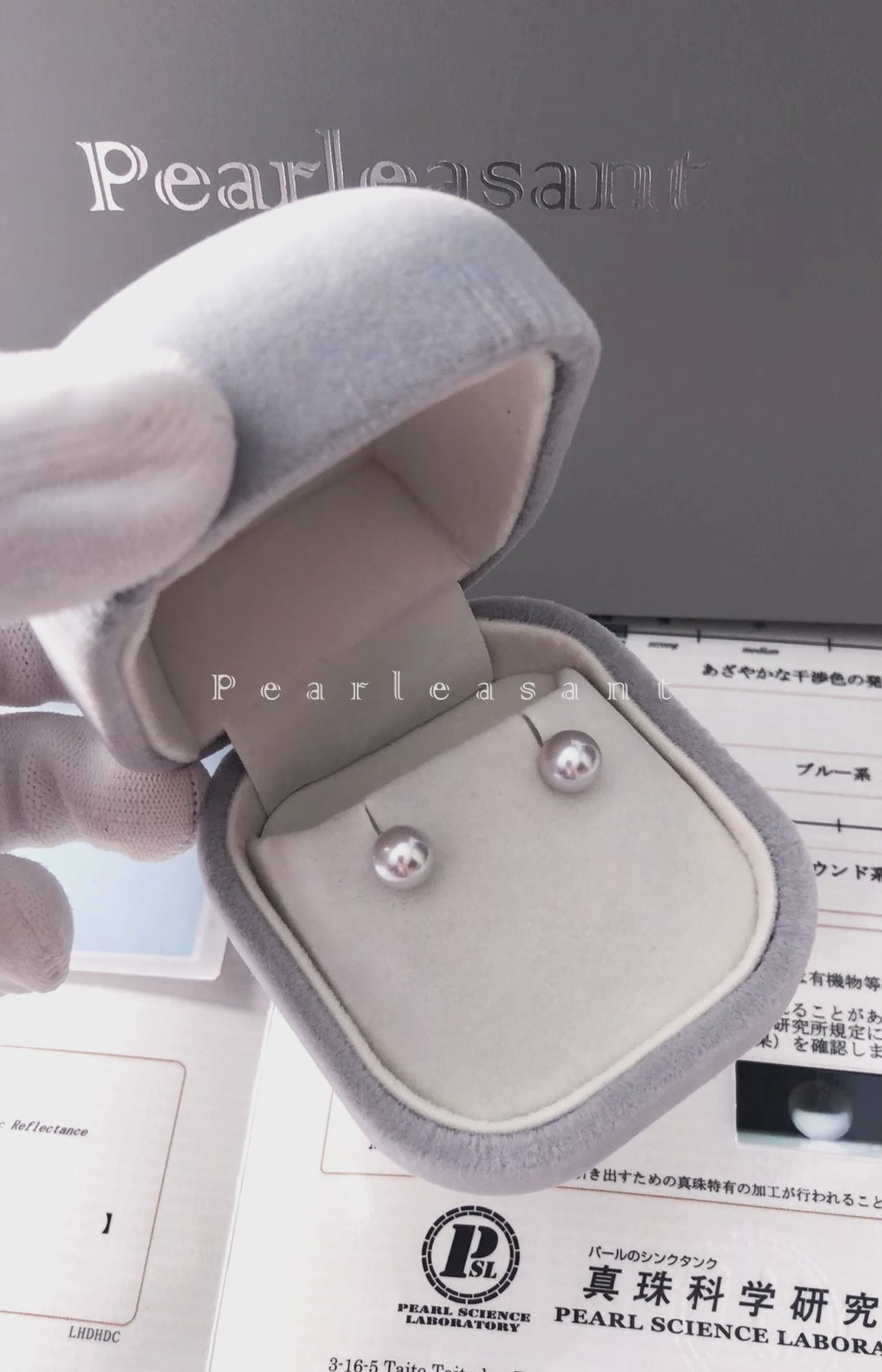 Madama PSL Certified 7.0-7.5mm Silver Akoya Pearl Earring Studs