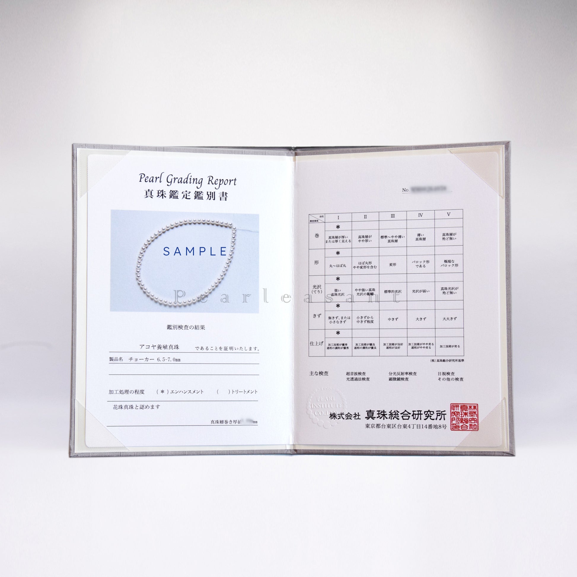 Certificate: 5-star Hanadama certified by Pearl Institute Co.LTD.