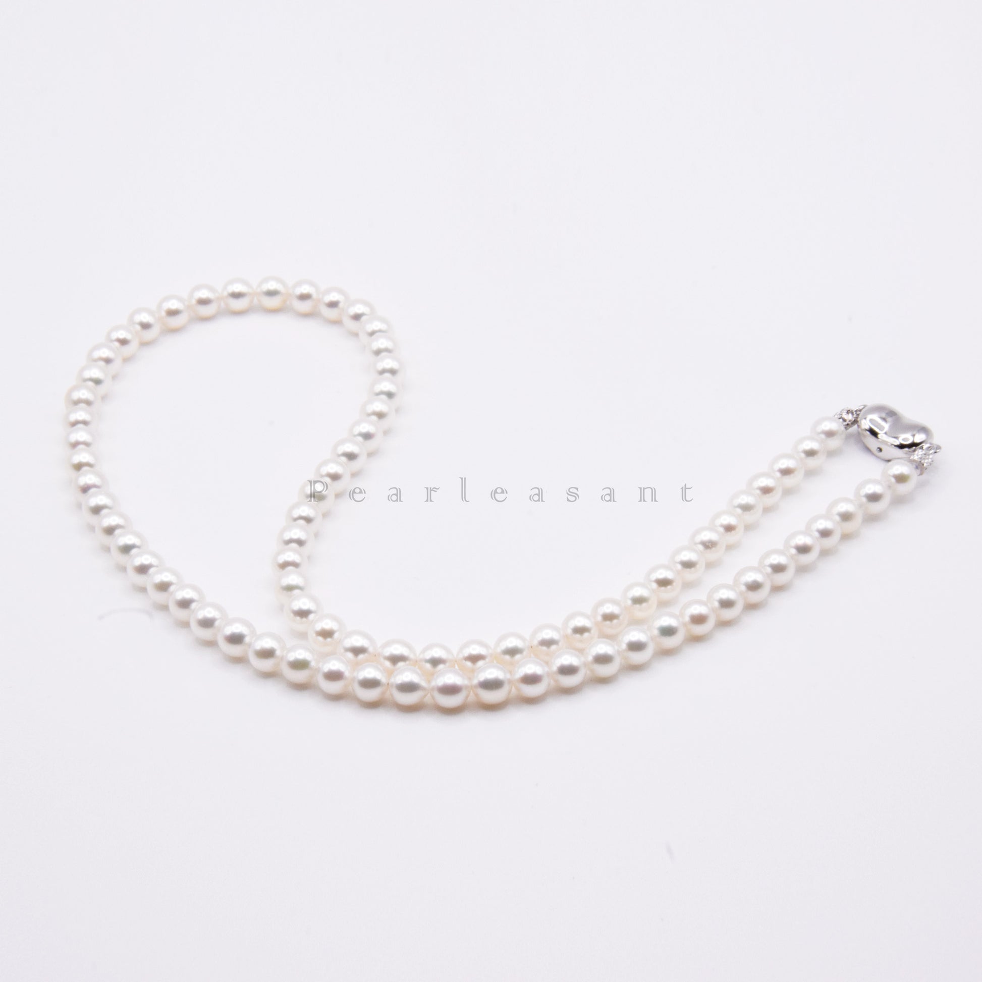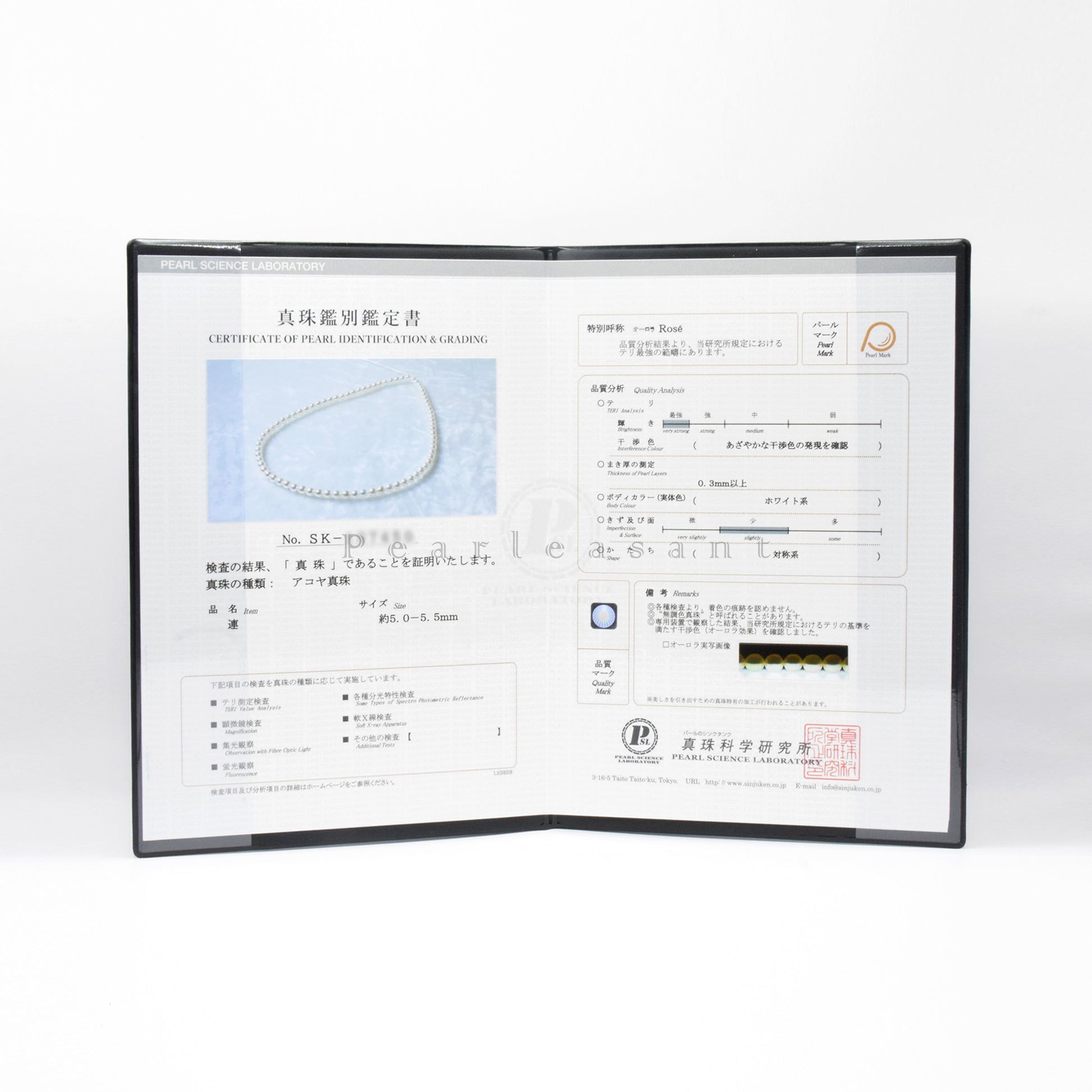 PSL Certified Rose 5.0-5.5mm Natural Snow White Akoya Pearl Necklace